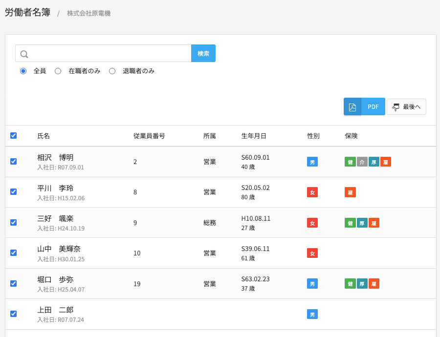 作成した労働者名簿はPDFファイルとしてワンクリック出力。